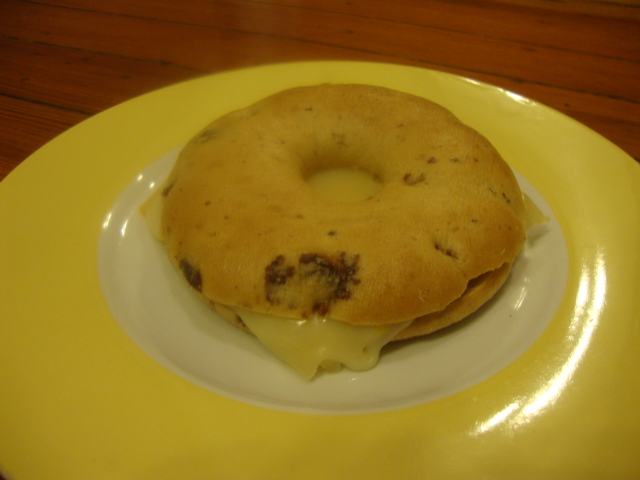 I was hungry all through the morning and by the time we got home not eating enough today (or really yesterday!) hit me hard. I made a Cinnamon Raisin Bagel Thin with a few slices of 2% cheese immediately.