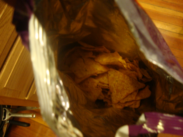 The last ~2.5 servings of Doritos straight from the bag.