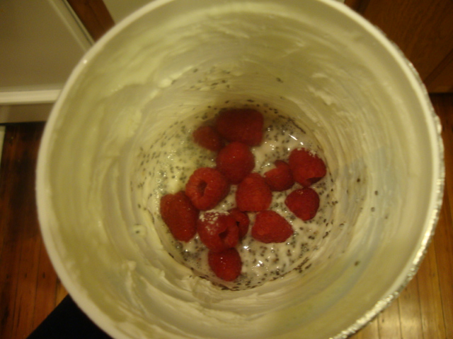 Then I plopped in a big handful of raspberries before the mix had time to resolidify.