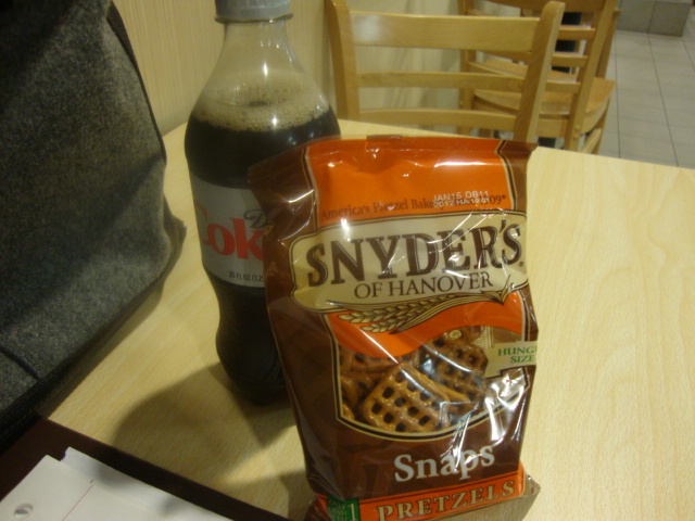 We recently got a recall notice for the husband’s car so I spent my afternoon out at the Toyota dealership.  I did a little bit of studying and made the best meal I could from the vending machines.