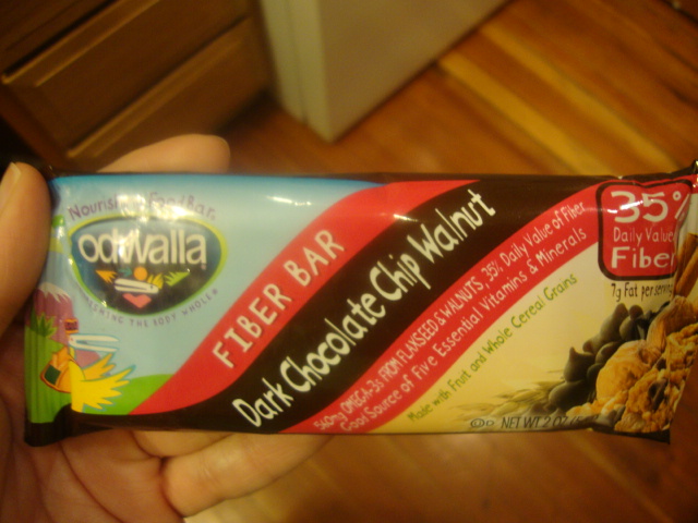 I also packed an Oldwalla Dark Chocolate Chip Walnut Fiber Bar, also from HLS.