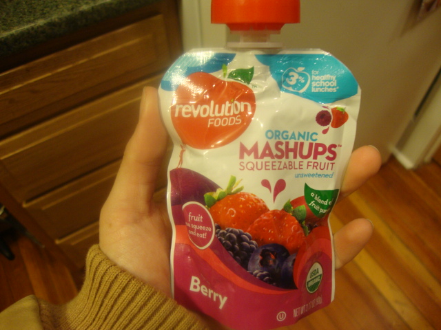 Breakfast was grabbed quickly but ended up being good.  A Revolution Foods Organic Berry MashUp.