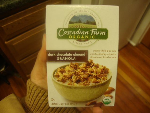Plus a sample box of Cascadian Farms Dark Chocolate Almond Granola from HLS.