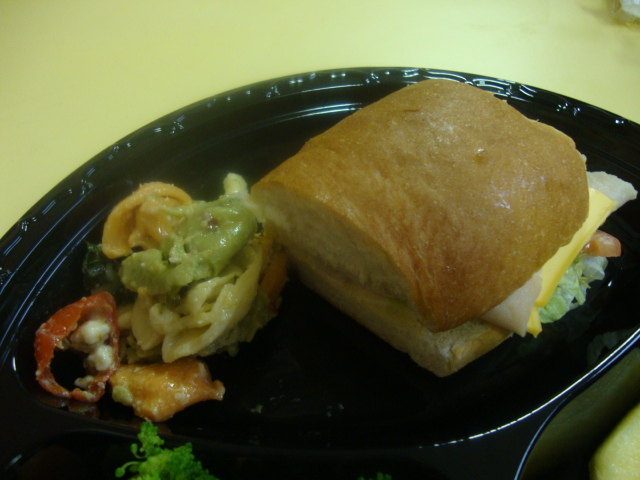 bit of pasta salad and a turkey sandwich with chipotle mayo.