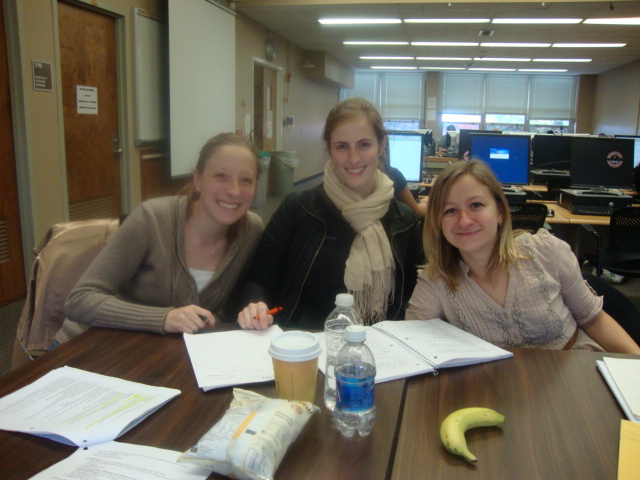 The hours of 12 – 3 were spent hard at studying with some friends in a computer lab.
