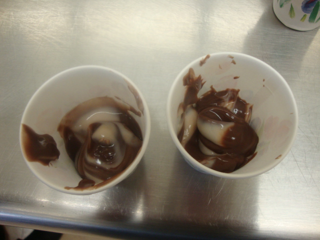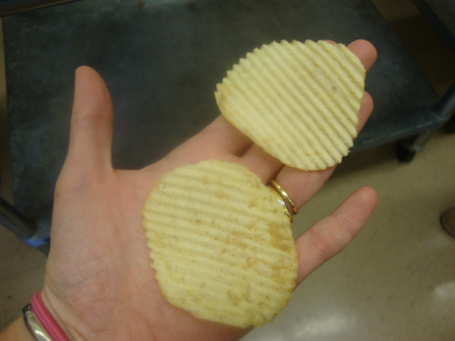 Today’s food lab was the fat substitute group.  Normally I don’t snap pictures because I’m too busy taste-testing but there were a few things I couldn’t eat today so I had the time to photograph.  We tried regular and reduced fat samples of potato chips,