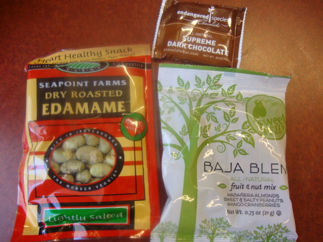 and roasted edamame, a fruit and nut blend, and a small square of dark chocolate (all of which were fantastic).
