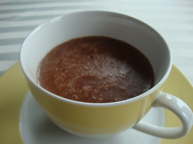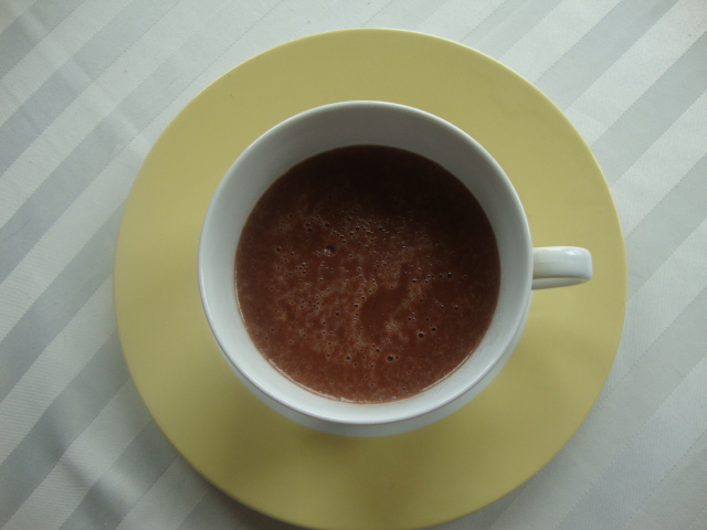 2. Whisk cocoa powder into simmering milk.  When cocoa has been fully incorporated, whisk in Biscoff spread.