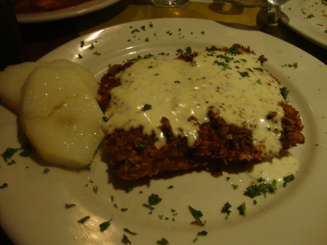 For dinner I got Mahi Mahi crusted in corn flakes and topped with a honey mustard sauce.