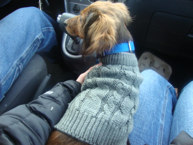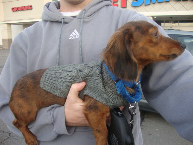We made a quick stop at home to pick up the little destructor and then we headed to Pet Smart. Someone has been getting chilly on walks.