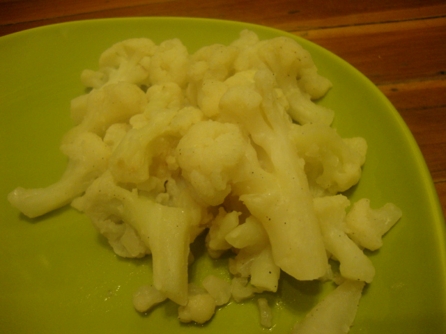 We split a bag of Bird’s Eye garlic cauliflower,