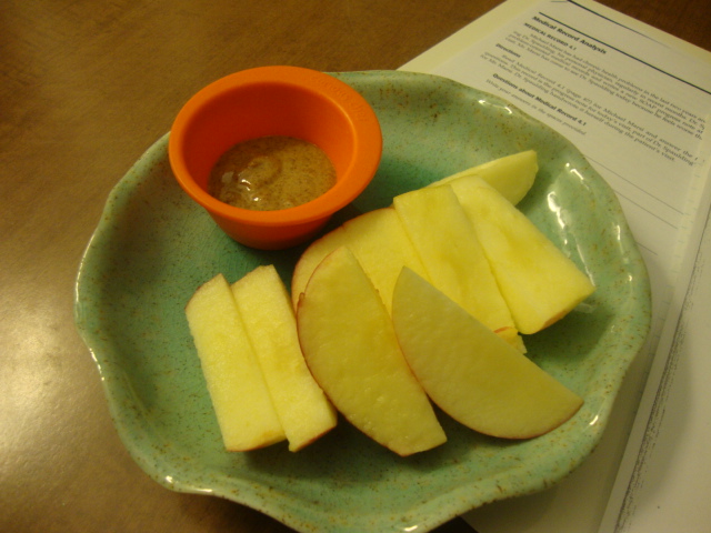 Plus fruit as an apple with Justin’s Maple Walnut Butter.