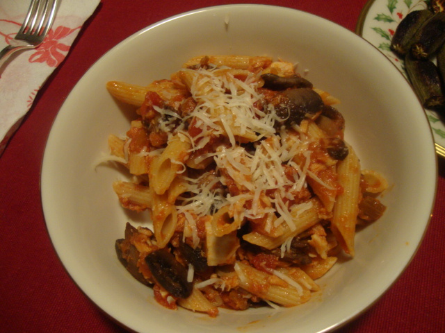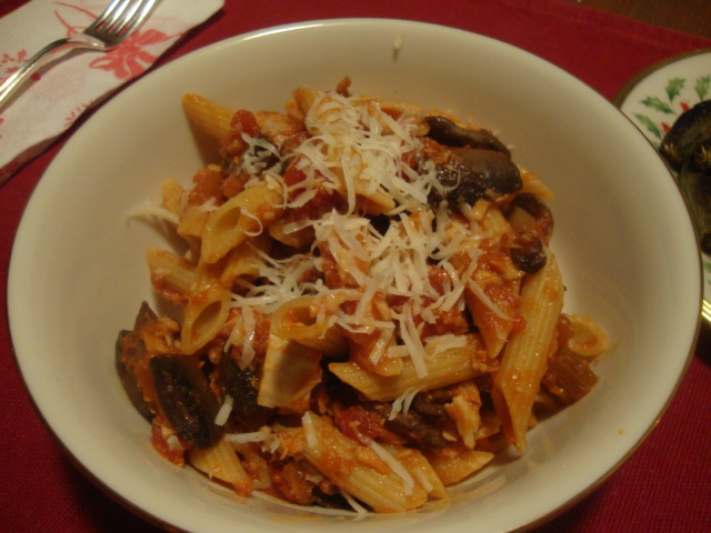 My parents are wimps so I had to sub two cans of tuna fish for sardines, but other than that I followed my recipe for Sardine Mushroom Tomato Sauce.