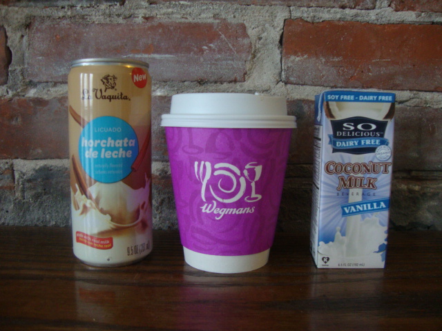 I chilled the coffee, then put it in a big jar with the So Delicious Vanilla Coconut Milk and 2 tsp of sugar, and shook shook shook. Plus ice and a straw.