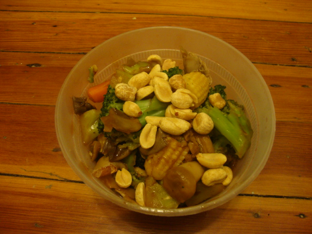 Topped with dry roasted peanuts because we ran out of cashews.