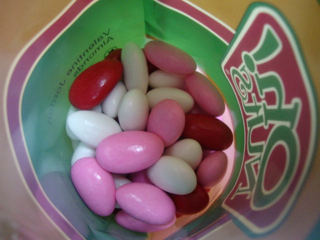 One of the people I love is my dad. One of the things he loves is Jordan almonds. He’s passed this love on to me, and we both know exactly what to look for in a good Jordan almond – thick but slightly soft shell on a crunchy almond – and where to look for them – the “foreign” section of grocery stores, specialty markets, and the occasional wedding.