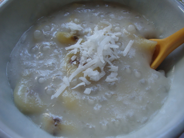 - Add banana slices to the pot and cook another 5 minutes, stirring carefully. Cook until tapioca are translucent.