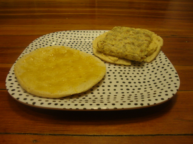 And a Sandwich Thin with mustard, roasted garlic hummus, and 4 oz of raw tempeh.