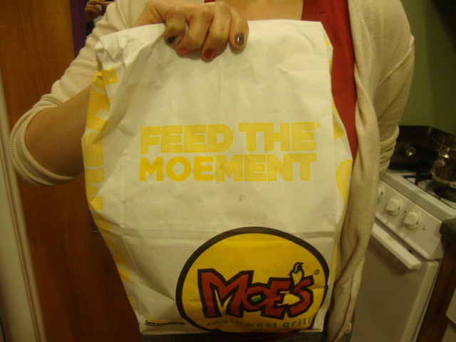 I had a free coupon so our romantic Valentine’s Day dinner was … Moe’s!