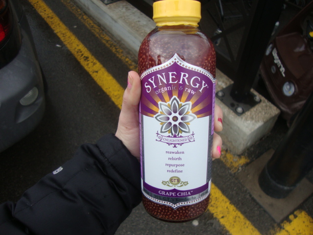 This morning Adam and I headed straight out on errands. Probably not my best idea to skip breakfast when I slept through dinner, but I was a woman on a mission. I got so hungry that I convinced myself that spending $3 on a Synergy Grape Chia Kombucha wasn’t a waste of money.