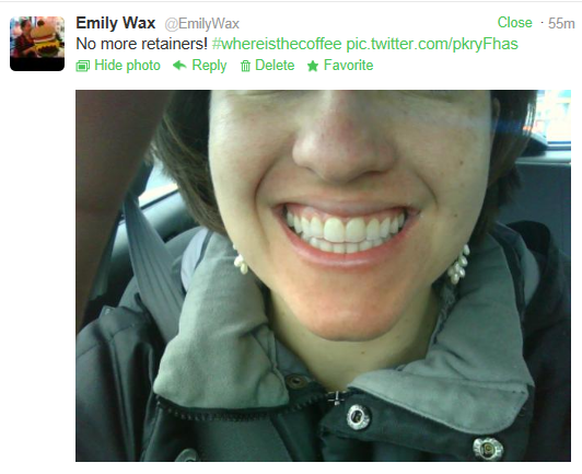 Woot! I’m not officially done with retainers but we’re doing a three-week trial of wearing them just at night. I’m not gonna lie; it’s possible I got choked up I was so excited to leave my orthodontist appointment without retainers in my mouth.