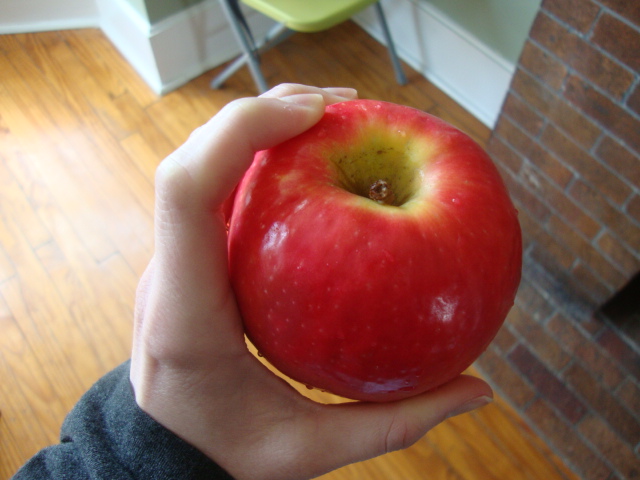 I ate lunch on my walk to school, or at least attempted to. First, a delightfully crunchy pink lady apple.