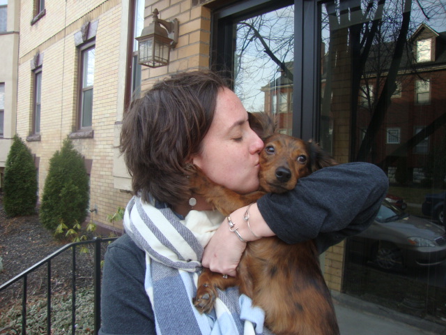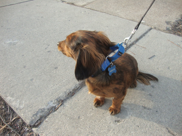 My delicious sandwich was eaten on the go. It was warm enough this afternoon to walk Webster sans coats!
