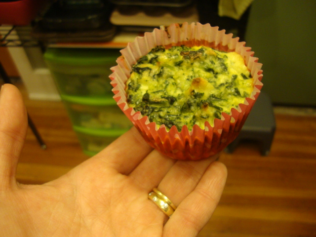 When I was at work on Wednesday Adam made a version of my Healthier Spinach Ricotta Pie with spinach and chopped broccoli. He put the extra into cupcake tins. I brought three egg cups for lunch today.
