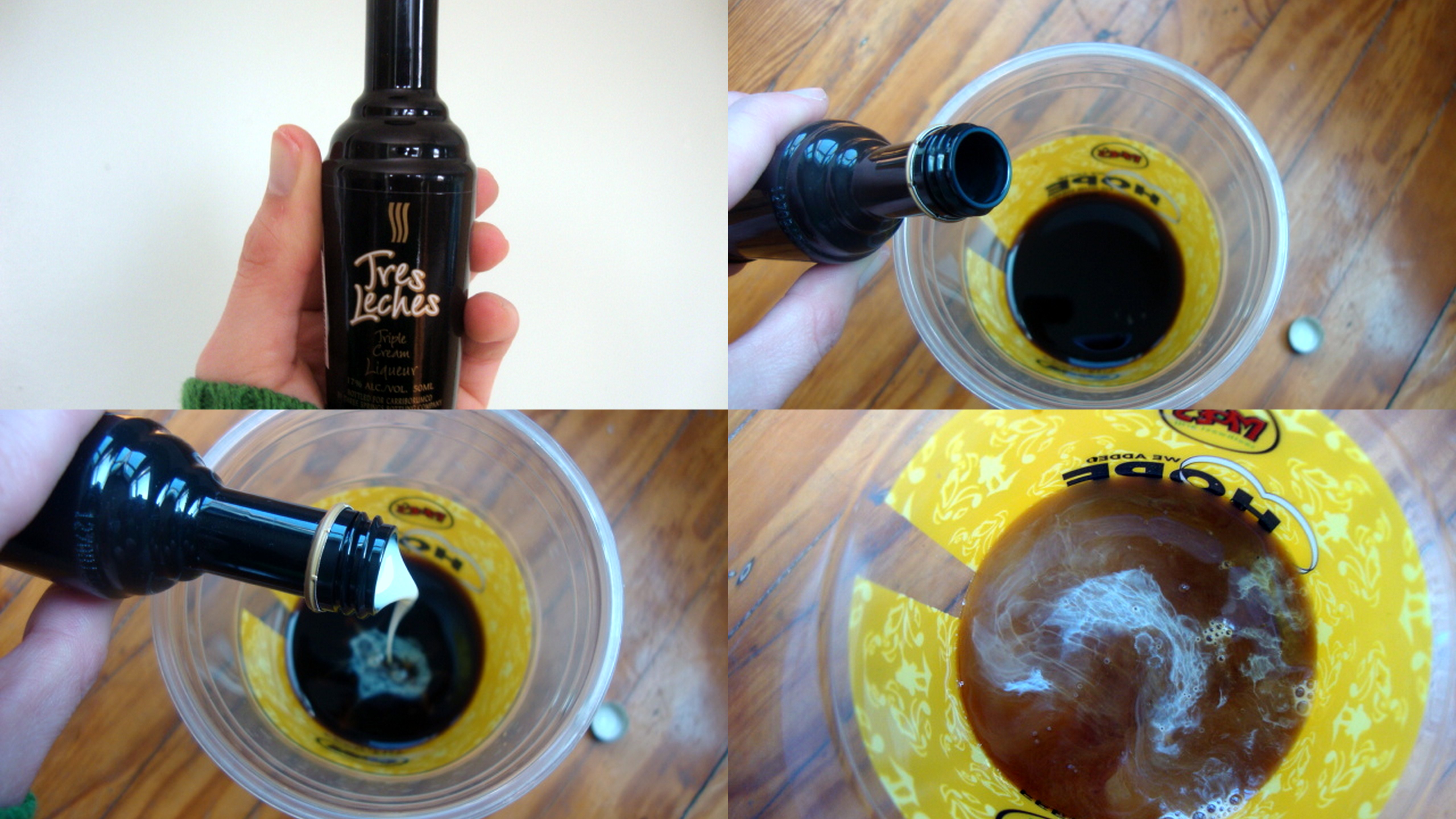 Iced coffee with Tres Leches Liqueur and Silk Unsweetened Vanilla Almond Milk.