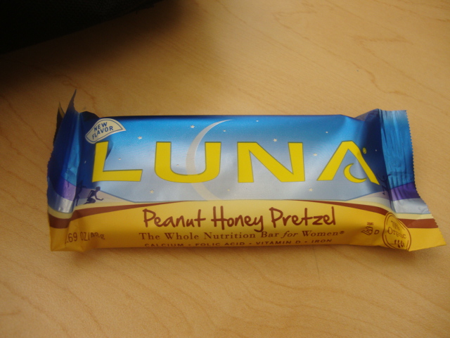 Since our fridge is beyond bare and I was basically too busy to eat all day this recap will be quick. I ate a Peanut Honey Pretzel Luna Bar during Statistics.