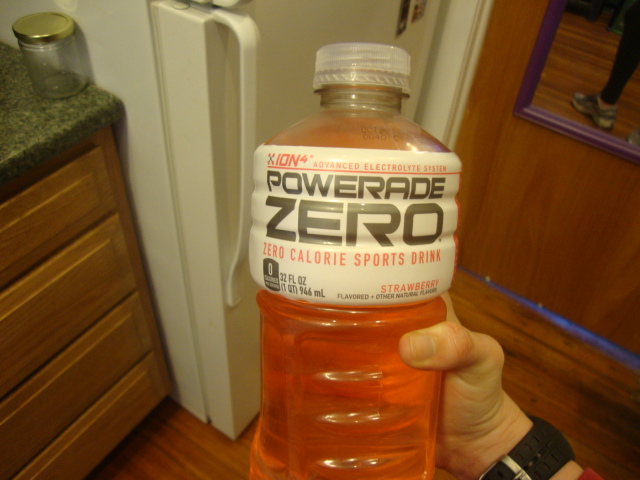 Before and after my run I took a few swigs of this Strawberry Powerade Zero.