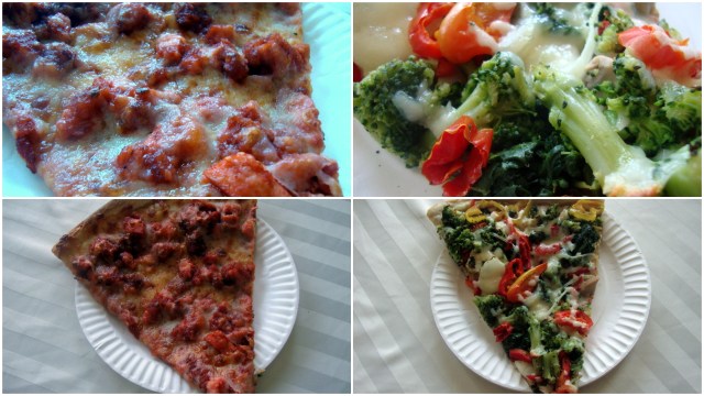 Bbq chicken and veggie. The veggie slice was loaded with vegetables; broccoli, spinach, and several types of peppers. I was full to the brim afterwards, mostly with cheese, but at least I got in some solid servings of vegetables.