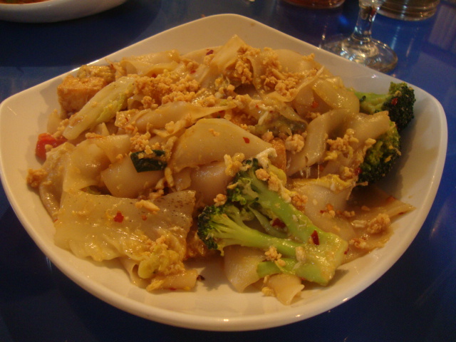 Broad rice noodles with brocoli, boy choy, peppers, and egg. The extra spicy was actually spicy, a major plus over other local Thai places. But the noodles didn’t have the amazing “marshmallow” quality that I look for in good broad rice noodles.