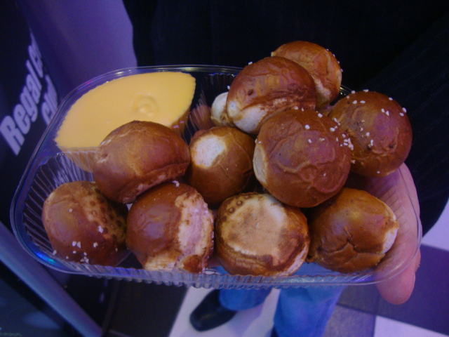 I didn’t have to wait long to eat again (do I ever?!); we went to the movies this afternoon and I polished off 90% of these pretzel bites.