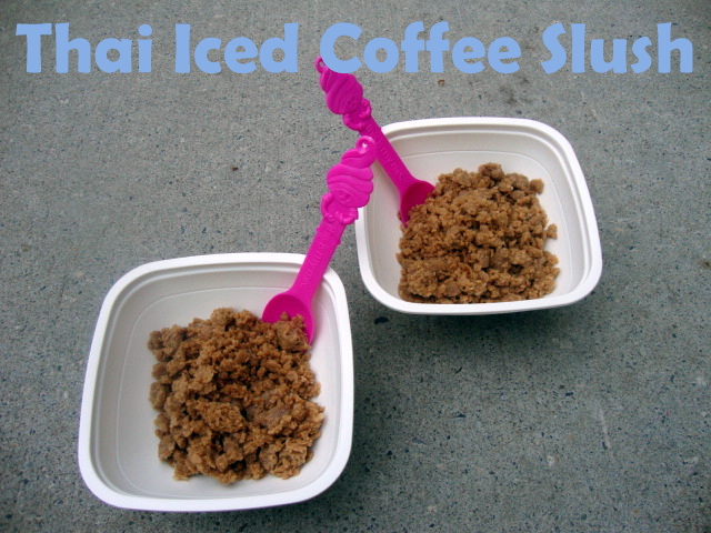 When we lived in Park Slope there was a coffee shop on our block with the best-ever coffee granita.  We were obsessed and Adam got a granita for free two years in the row because he was the first person to order it at the end of winter.  This was my attempt at a Thai Iced Coffee style granita.