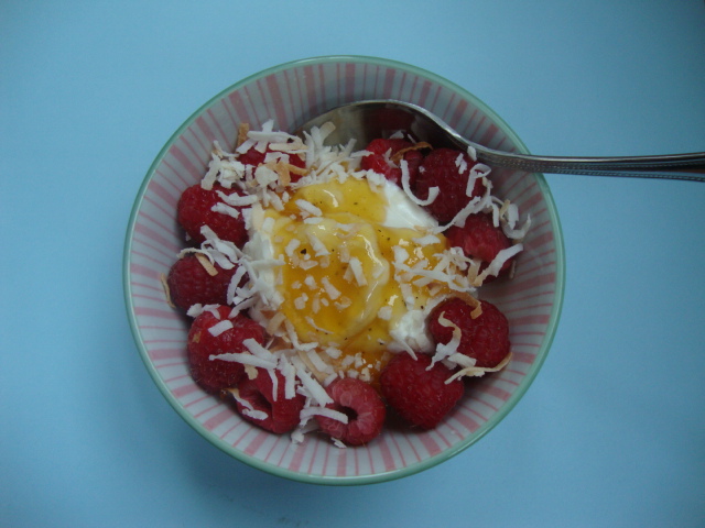 4. The new 2% Coconut Siggi’s Skyr yogurts are delicious. I ate one for breakfast topped with raspberries, 1 tsp passionfruit jam, and a sprinkle of toasted coconut.