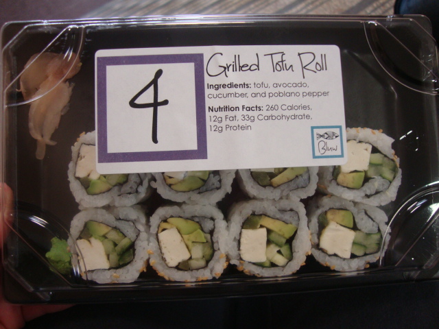 I also had lunch with a friend while I was on campus. She switched out of Dietetics a few months back and I don’t get to see her as often so it was nice to hang. I grabbed a grilled tofu roll from the cafeteria sushi place.
