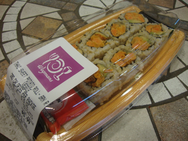 I was glad that I choked down the bar because dinner ended up being pretty lame. We stopped at Wegmans for hot bar but there wasn’t much time and I panicked and grabbed my 2nd serving of sushi for the day. A Thai sweet potato roll with brown rice.