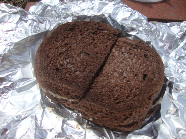 and a grilled cheese of pimento cheese on pumpernickel with red onion.