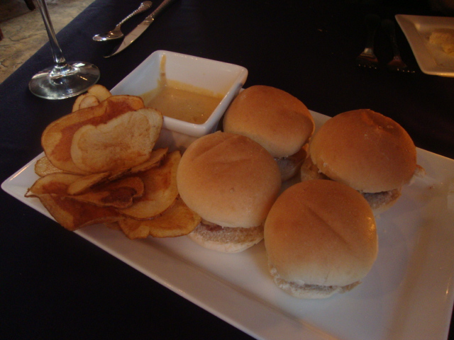 And Adam ordered the Filet Sliders – with house-made sea salt and vinegar potato chips and smoked gouda fondue as an appetizer.