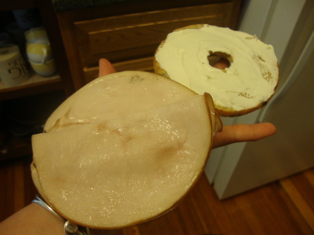 I had a Cinnamon Raisin Bagel Thin with jalapeño cream cheese and Applegate Farms’ Smoked Turkey.