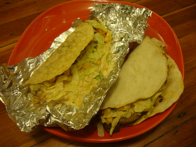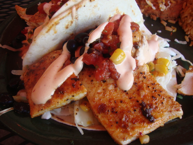 Two fish tacos, one hard and one soft for variety’s sake.