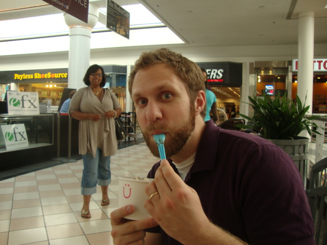 I’m glad we did lots of walking because the day’s dessert consumption wasn’t over yet. Holly told me something very exciting about our mall. Something very exciting that I managed to keep to myself long enough to surprise a very happy husband…