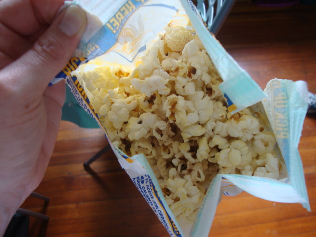 Backing up to yesterday afternoon… I decided to eat a snack at home before I went on my errands. A mini bag of popcorn; I believe it was butter flavored because it didn’t taste like kettle corn but I got a big pack with both and the bags aren’t labeled and it drives me crazy.