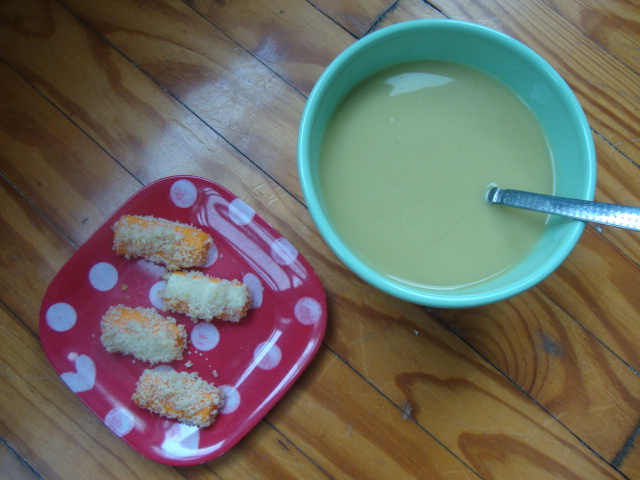 The main dinner component was supposed to be soup. I served Adam and myself each 2 servings of Imagine’s Organic Creamy Brocoli Soup.