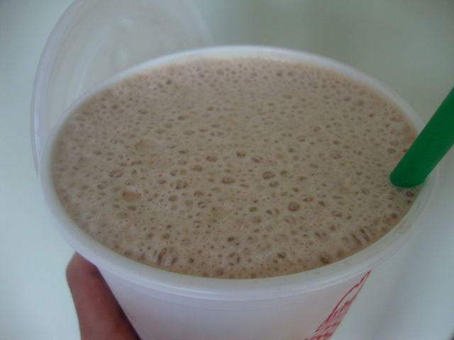 Shot of espresso #2 (not literally but just go with it) was consumed when the husband got home and we shared a frozen coffee. I blended up a packet of Starbucks Caramel Via, a scoop of chocolate whey protein powder, 2 cups of skim milk, ~2 Tbsp English Toffee syrup, and lots of ice.