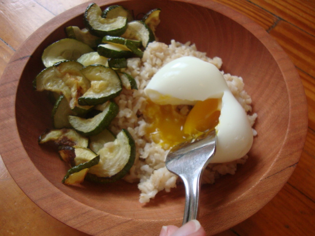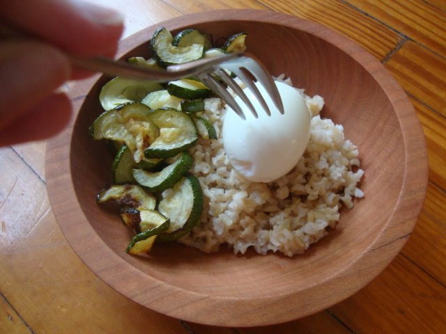 Your dinner bowl looks delicious! I eat similar bowls, however, the addition of soy sauce to brown rice and runny eggs takes it to another level!…Trust me! 🙂