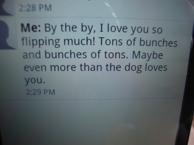 Confession #4 – Otherwise I send embarrassing texts. What’s worse is that this isn’t even true; no one loves anyone like Webster loves Adam.