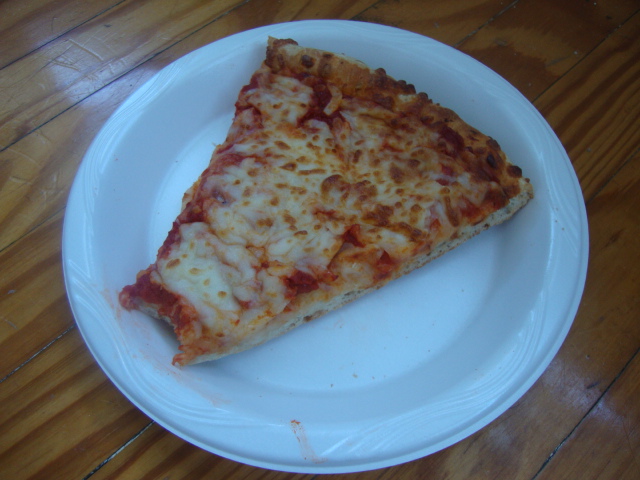 When I got home in the afternoon I ate my slice of husband-delivered cheese pizza.