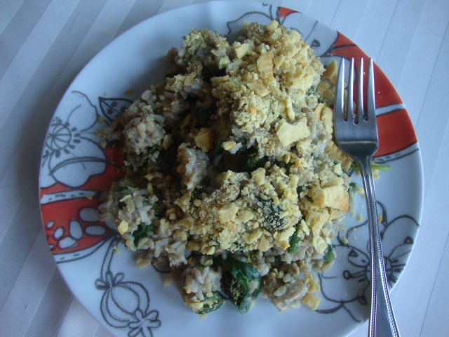 Our dinner casserole was assembled yesterday and all we had to do today was bake, easy peasy.